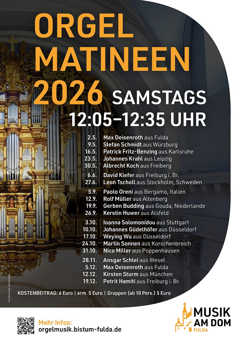 Orgel: Joshua Mitas, Younjeong Lee, Yewon Lim, Maria Astanina, Philip Klimek (Studierenden der Robert-Schumann-Hochschule) |
